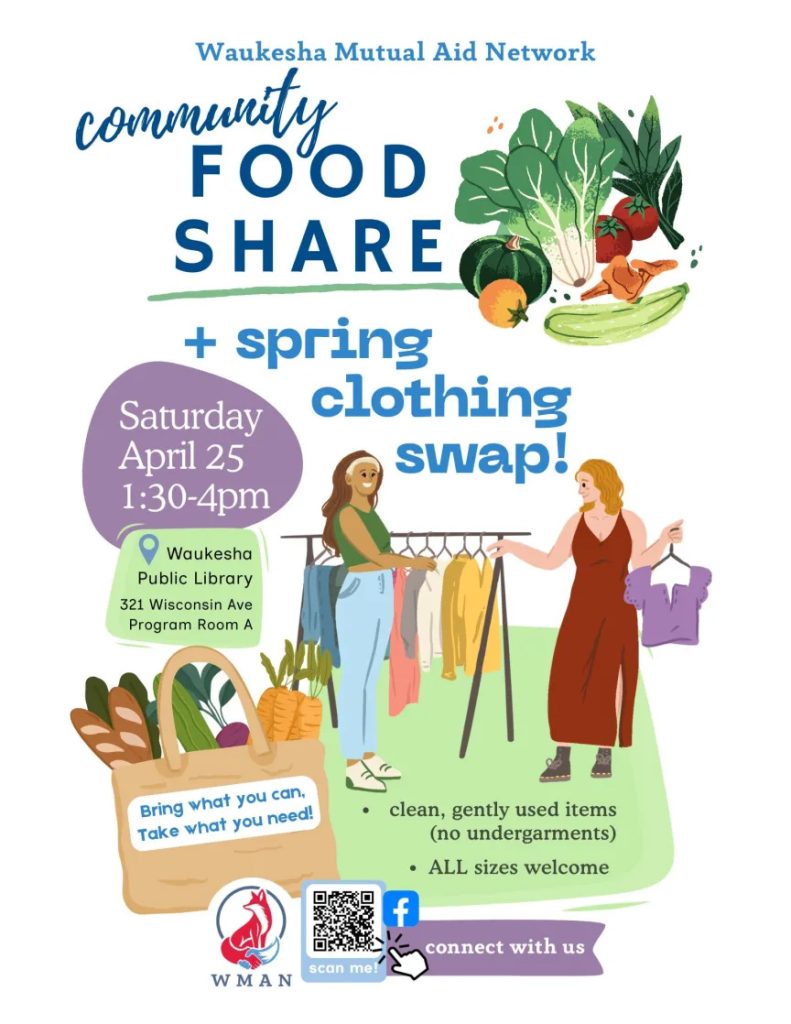 Join us for our April Community Food Share, in tandem with our first Spring Clothing Swap!